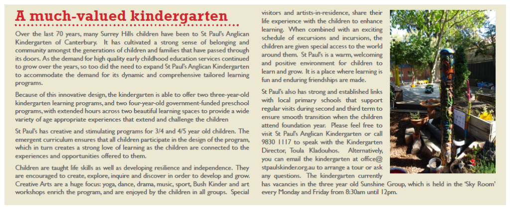 St Paul’s Anglican Kindergarten has launched a Facebook page! Click the link below to check it out.